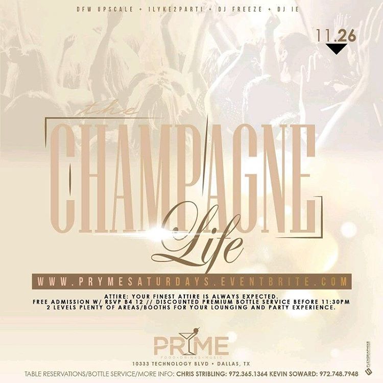 Pryme Saturdays is the Premier spot in Dallas as this event is for the trendsetters, entrepreneurs, fashionistas, and go-getters. Multiple areas for your dancing & lounging pleasure while providing the perfect soundtrack for your Saturday nights.