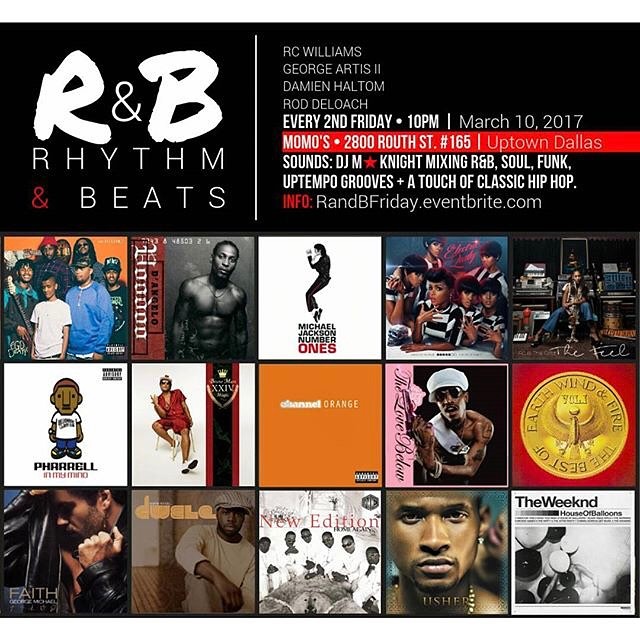 DJ M*Knight mixing soul, R&B, funk, & uptempo grooves from The Internet, Anderson.Paak, Bruno Mars,BADU, Foreign Exchange, Beyonce, Solange, Mary J. Blige, Pharrell, Childish Gambino, Teedra Moses, RC & The Gritz to Michael Jackson, Prince, TLC, Stevie Wonder, New Edition, Jodeci, Total, & Earth, Wind, & Fire + decades of great music! Throw in some old school hip hop, and you got a great night!
