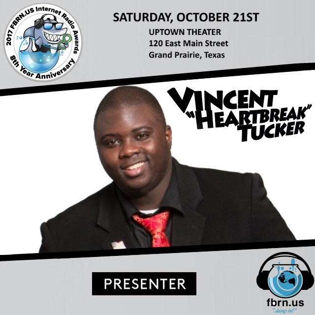 Fishbowl Radio Network & Digital Media announced today that Vincent “Heartbreak” Tucker – syndicated radio personality and multi-faceted entertainer – will be one of five presenters for the 2017 FBRN.US Internet Radio Awards this Saturday, October 21st at 8 p.m. CST.
